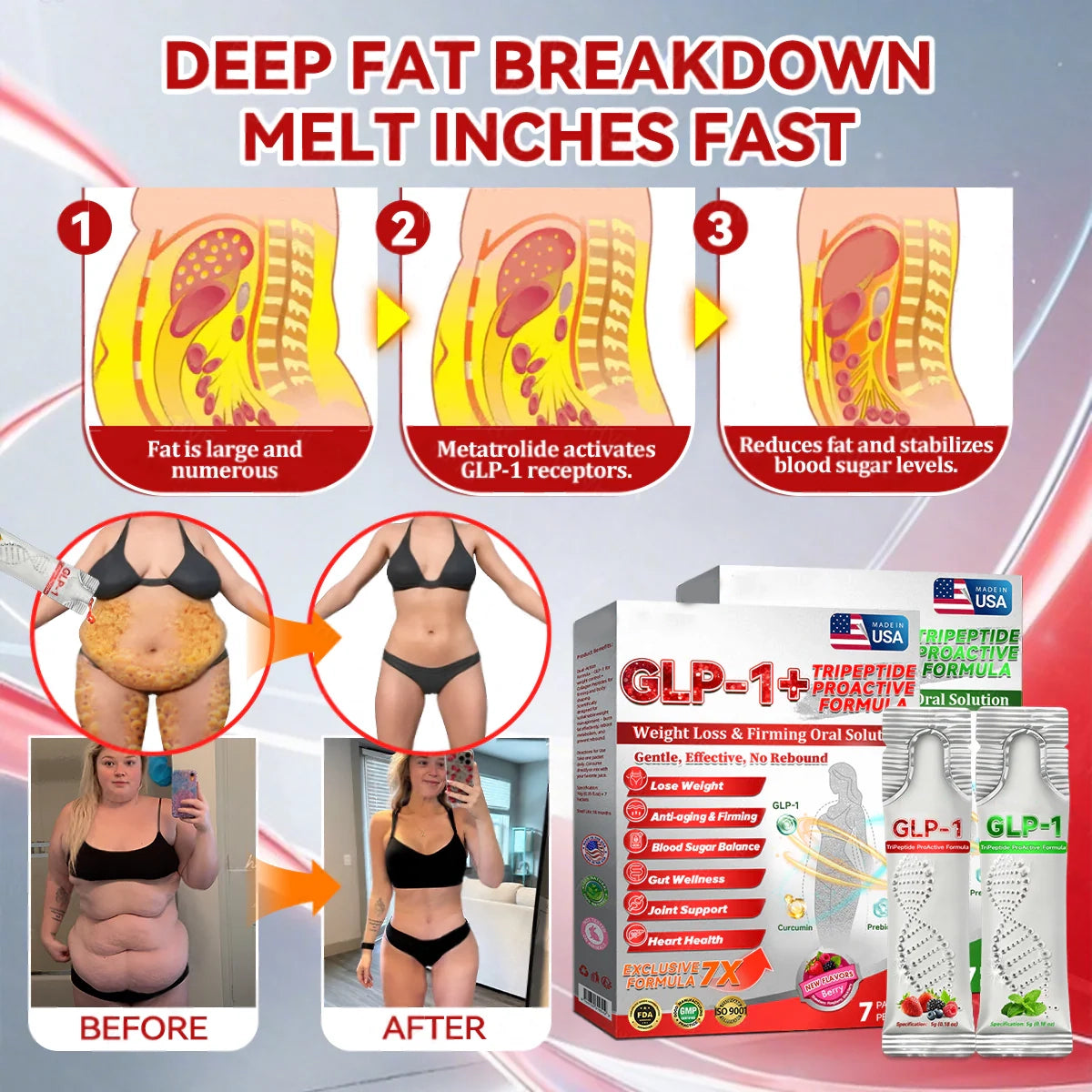 GLP-1+Collagen Peptides Weight Loss&Firming Oral Solution Developed by an international team of metabolic and endocrinology experts, the GLP-1 + Collagen Peptides Oral Solution represents a groundbreaking synergy in weight management and skin regeneration.GLP-1 technology precisely targets the bodyâs metabolic center to regulate appetite, accelerate fat breakdown, and restore energy balance. Meanwhile, Collagen Peptides work deep within the dermis to repair structural loss caused by fat reduction, rebuilding the skinâs support network and visibly improving firmness and elasticity.Clinical studies demonstrate that this dual-action formula delivers measurable resultsâreducing body fat while enhancing skin tightness within a short period of use. It offers a scientifically validated solution for sustainable health, firmness, and long-lasting vitality.